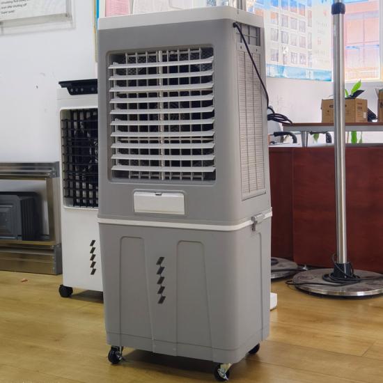 El enfriador de aire evaporativo Siboly es un aparato que enfría el aire mediante la evaporación del agua. El enfriamiento evaporativo es totalmente diferente de los sistemas de aire acondicionado tradicionales, que utilizan ciclos de refrigeración por compresión de vapor o absorción. El enfriamiento evaporativo funciona aprovechando la alta entalpía de vaporización del agua. La temperatura del aire seco puede reducirse significativamente mediante la transición de fase de agua líquida a vapor de agua (evaporación), lo que permite enfriar el aire con mucha menos energía que la refrigeración. En climas extremadamente secos, el enfriamiento evaporativo ofrece la ventaja adicional de acondicionar el aire con más humedad para la comodidad de los ocupantes del edificio.